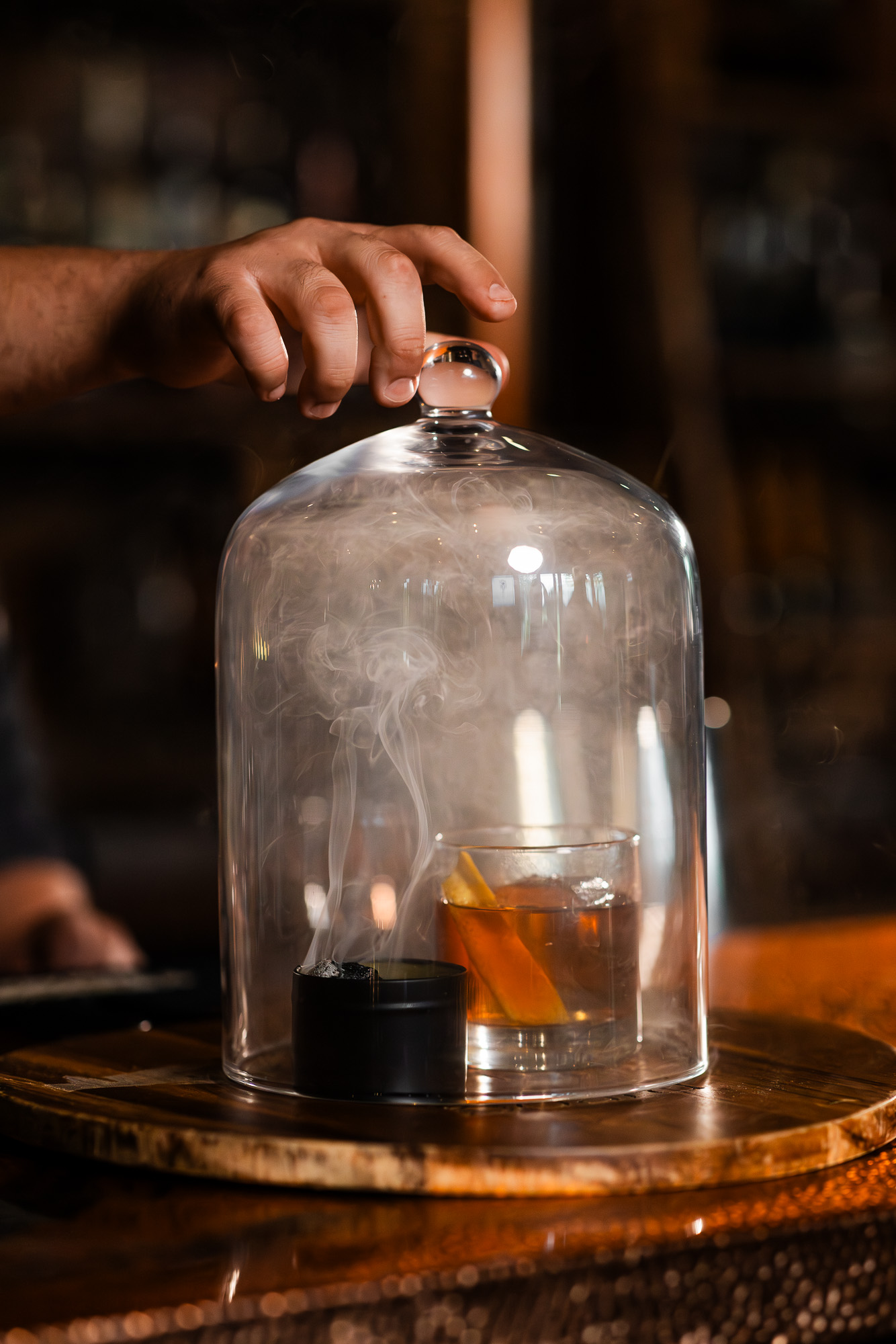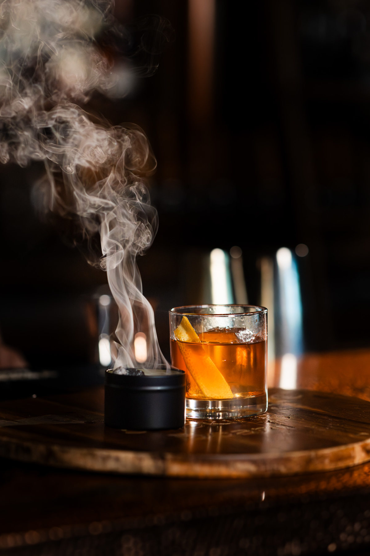 Bourbon Lemonade: Buffalo Trace Bourbon, Brown Simple Syrup, Fresh Squeezed Lemon Juice, Smoked with Cherry Oak